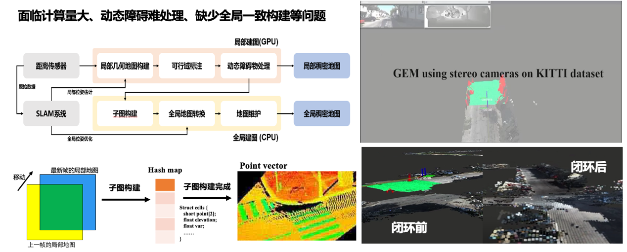 最后,我们还开展了智能移动和智能操作方面的研究。自2003年以来,浙大一直在这个领域进行研究,并在各种机器人应用中进行了验证,包括工业机器人、无人驾驶车辆以及特殊环境。结合腿足机器人,团队还专注于以下方面的进一步研究:首先如何构建大范围全局一致的稠密高程地图,如图12所示;其次,为解决足式运动引起的震荡问题、足式运动所带来的计算资源限制,以及在特殊环境中纹理稀缺或传感器失效的情况下如何选择适合的传感器和传感器融合问题;以及如何规划落脚点。