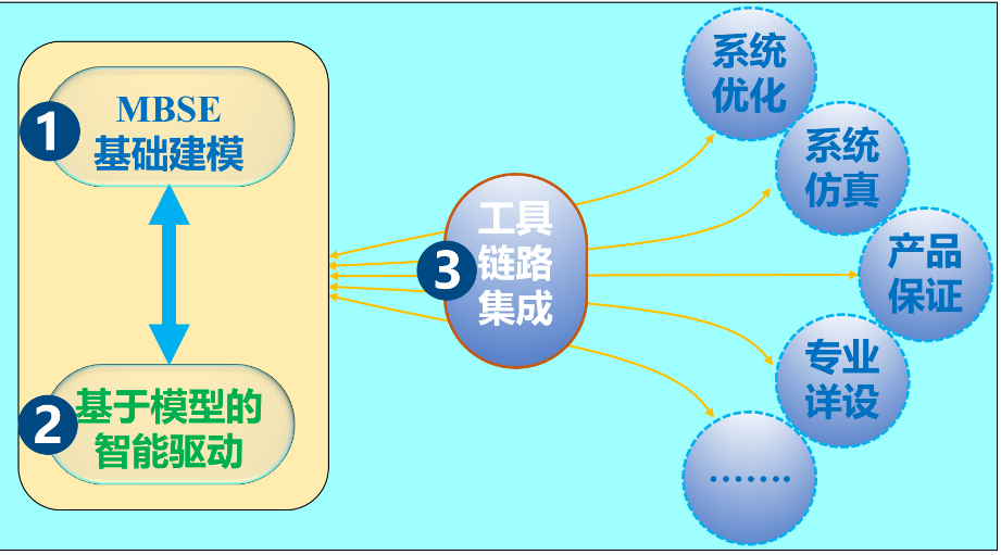 MBSE的深度体现在多个方面,如图1所示。首先是建模工作,不仅包括基础建模,即语言的本质和核心特性,更为关键的是语言应具备良好的扩展机制。其次,基于模型的智能驱动有助于避免单纯陷入建模过程。这需要采用智能方法来实现自动化设计和建模。概念设计在整个系统中是影响后续成本的关键部分,因此需要与系统的下游、相关体系以及其他工作流程进行集成,避免信息孤岛的形成。这种集成工作涉及系统优化、系统仿真、产品保证以及专业详细设计等多个方面。