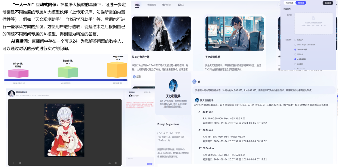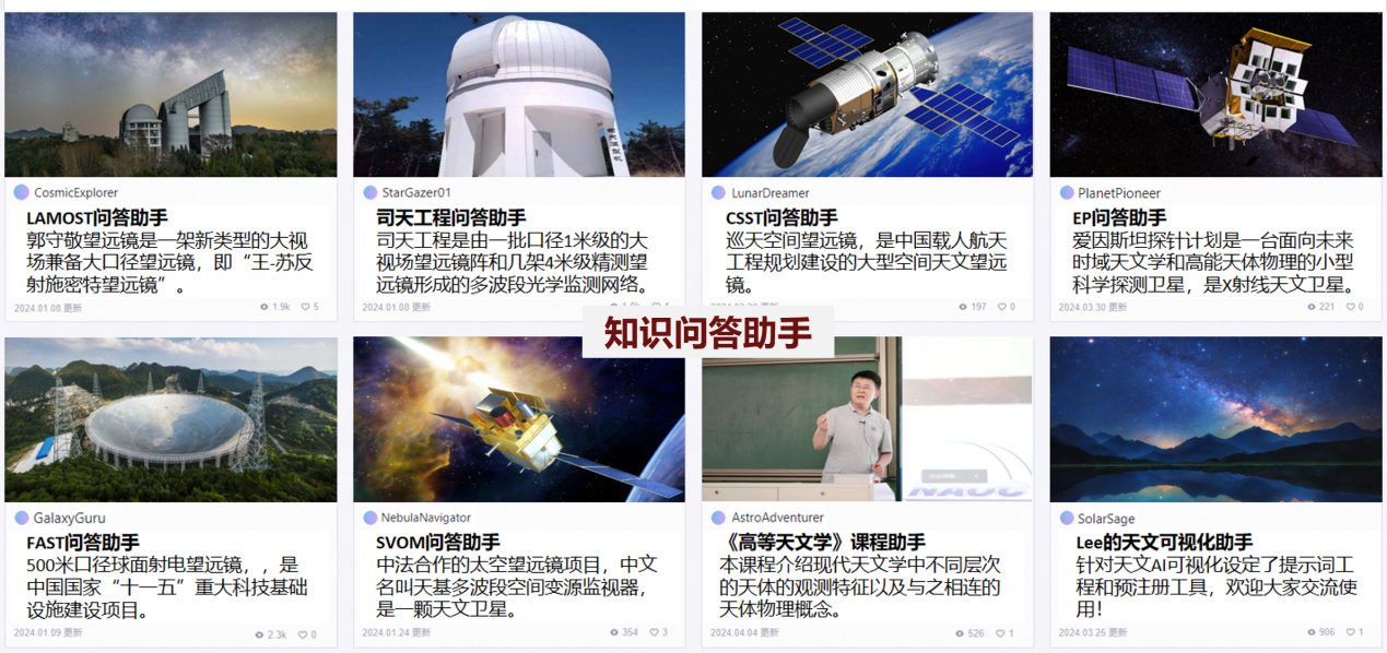 在2023年,"Star Whisper"在工信部信通院的大模型排行榜中综合排名第二名。尽管这些学生的专业背景是天文学,但他们在投身这一项目后,凭借着对天文学的热爱和强烈的动力,取得了非常好的成果。“Star Whisper”不仅可以作为问答助手,帮助学生解答天文学相关问题,而且已经逐渐发展为一个学习社区,如图3所示。通过这一平台,全国范围内的学生,尤其是研究生群体,都能够通过它进行学习和互动。除此之外,Star Whisper还能够构建天文学知识图谱,进行文献推荐和归纳总结,使得学生可以高效地进行相关资料的检索和学习。