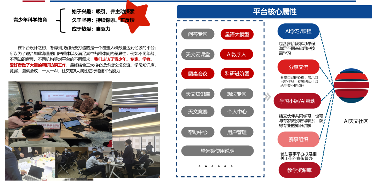 我们希望通过建设AI驱动的教育平台,打破传统的教育界限,帮助中小学生实现自我驱动的科研探索,让天文学成为每个人都可以接触和学习的学科。