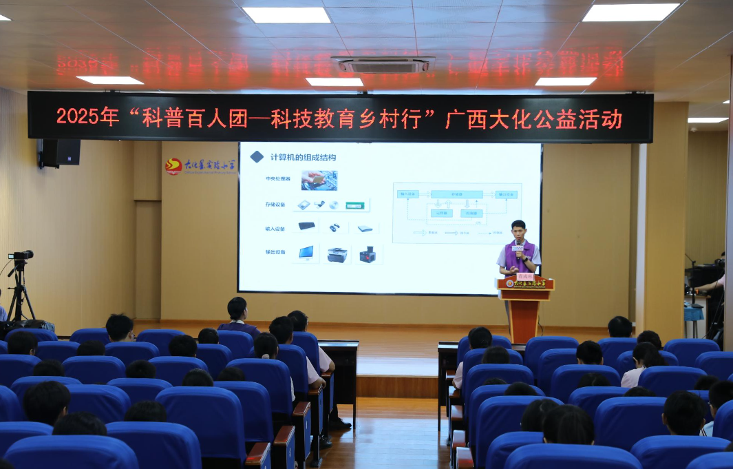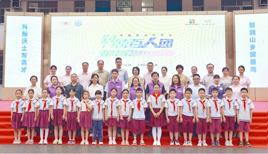 为进一步支持国家乡村振兴重点帮扶县,下沉优质科普资源,中国自动化学会(简称"CAA")联合中国科协农村专业技术服务中心共同开展2025年“CAA科普百人团——科技教育乡村行”公益活动。CAA普及工作委员会、CAA智慧教育专业委员会、广西壮族自治区科学技术协会、河池市科学技术协会和大化瑶族自治县科学技术协会共同承办“科普百人团一科技教育乡村行·广西大化瑶族自治县”公益活动。5月8日,科学家引领科普百人团“线上+线下”开讲,走进大化瑶族自治县高级中学、大化瑶族自治县实验中学、大化瑶族自治县实验小学、大化瑶族自治县第三小学和大化瑶族自治县新城小学“讲好一堂人工智能启蒙课”,为青少年提供一个了解人工智能的平台,将科技送到孩子们的身边,提高青少年对人工智能的认识和兴趣。